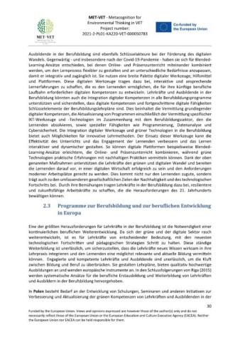 2.3 Programme zur Berufsbildung und zur beruflichen Entwicklung