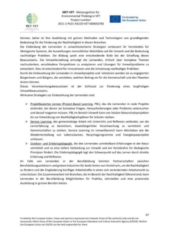 Bewusstseins. Die Umwelterziehung ermutigt die Lernenden, kritisch über komplexe Themen