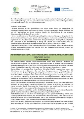 Umweltansatz zu reflektieren, und bietet gleichzeitig anderen Lernenden der Berufsbildung aus ganz