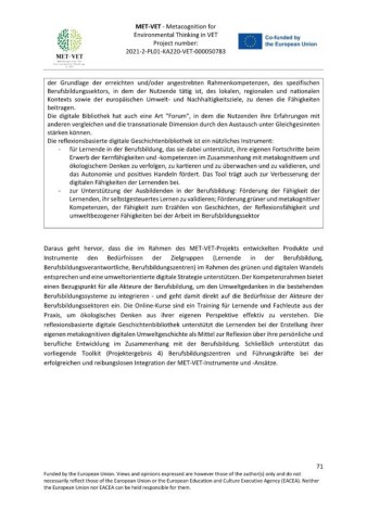 Daraus geht hervor, dass die im Rahmen des MET-VET-Projekts entwickelten Produkte und