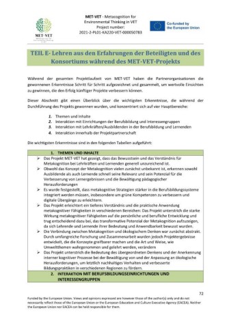 TEIL E- Lehren aus den Erfahrungen der Beteiligten und des