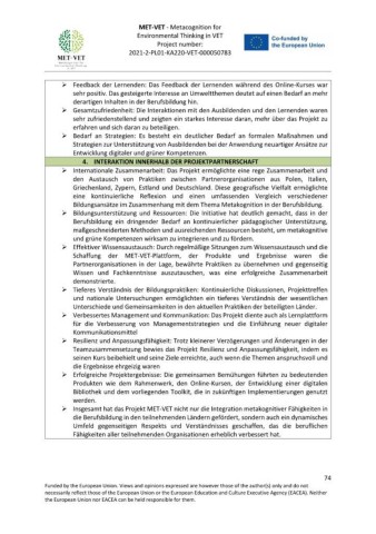 ➢ Insgesamt hat das Projekt MET-VET nicht nur die Integration metakognitiver Fähigkeiten in