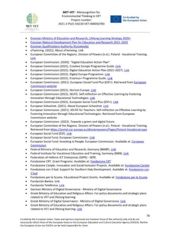 • Estonian Ministry of Education and Research, Lifelong Learning Strategy 2020+