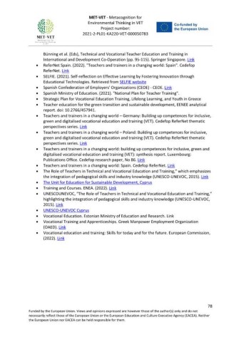• Vocational education and training: Skills for today and for the future. European Commission,