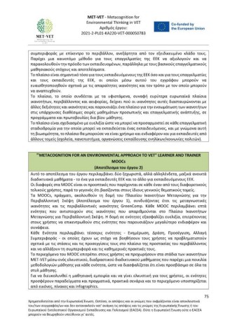 ικανότητες και τις περιβαλλοντικές ικανότητες GreenComp. Κάθε MOOC περιλαμβάνει επτά