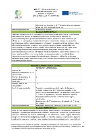 participantes y estaban relacionadas con la educación y formación continua, lecciones sobre