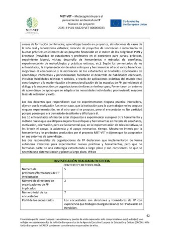 herramienta y los productos producidos por el proyecto MET-VET y dijeron que los adoptarían