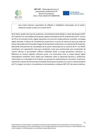 de FP a integrar con éxito y sin problemas las herramientas y enfoques MET-VET de manera inclusiva.