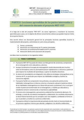PARTE E- Lecciones aprendidas de las partes interesadas y