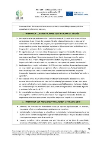 metacognitiva y ambiental en los entornos de FP, y las partes interesadas de todas las