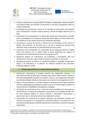⮚ Esfuerzos colaborativos: el proyecto MET-VET enfatizó la colaboración, viendo los desafíos