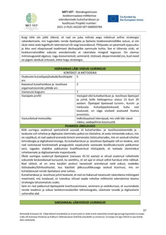 Vastuvõetud metoodika Individuaalsed intervjuud, mis viidi läbi näost