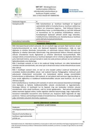 hotellijuhtimine, külalislahkus jne. Kutsehariduse ja -koolituse