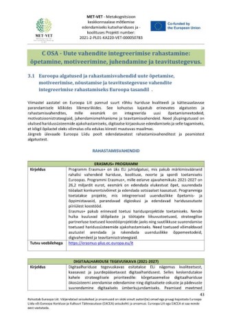rahastamisvahendites, mille eesmärk on integreerida uusi õpetamismeetodeid,