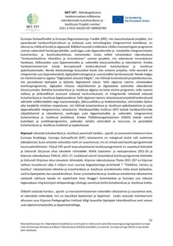vaid ka õpetajatele, kes saavad koolitust. Kutse- ja kutsehariduse ja -koolituse arendamise rahastamine