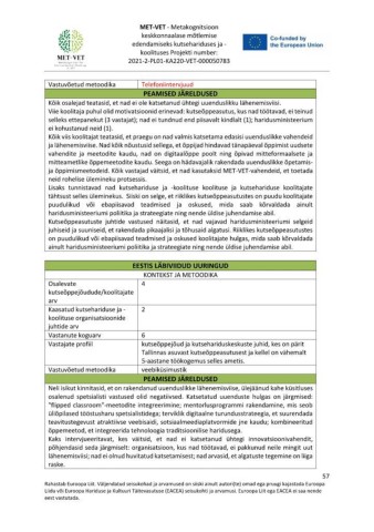 ja õppimismeetodeid. Kõik vastajad väitsid, et nad kasutaksid MET-VET-vahendeid, et toetada