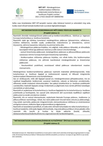 "METAKOGNITSIOON KESKKONNALÄHENDUSE KUTSEÕPPEKS" ÕPETAJA JA KOOLITUS MOOKSID