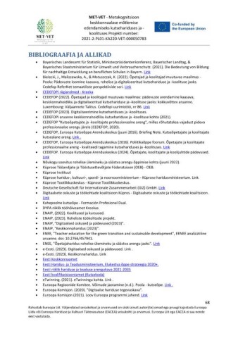 • CEDEFOPi aruanne keskkonnahoidliku kutsehariduse ja -koolituse kohta (2021).