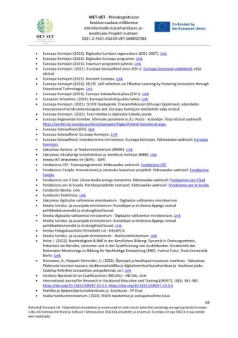 • Euroopa Komisjon. (2021). SELFIE õpetajatele: Eneserefleksioon tõhusast õppimisest, edendades