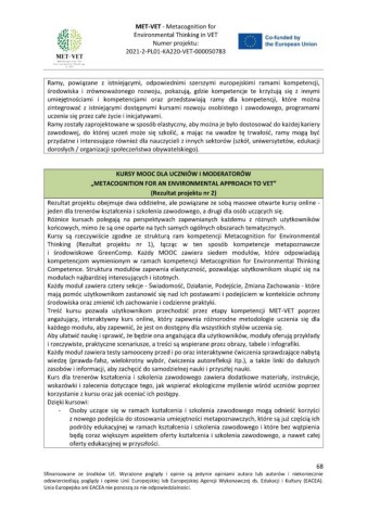 i środowiskowe GreenComp. Każdy MOOC zawiera siedem modułów, które odpowiadają