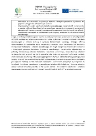 zawodowego w skutecznej i płynnej integracji narzędzi i podejść MET-VET w sposób integracyjny.