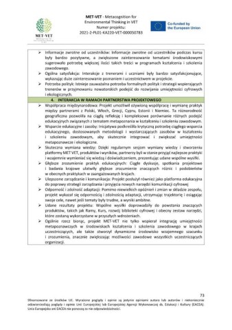 ➢ Ogólnie rzecz biorąc, projekt MET-VET nie tylko wspierał integrację umiejętności